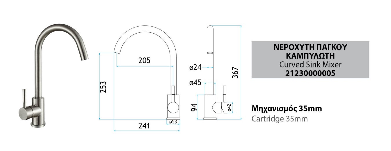 Είναι αναμεικτική, που σημαίνει ότι έχει έναν μόνο μηχανισμό μίξης για να επιτύχετε εύκολα την επιθυμητή θερμοκρασία του νερού, κάτι που την καθιστά εύκολη και πρακτική στη χρήση.