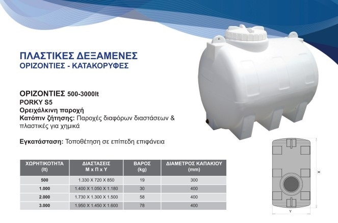 ΠΛΑΣΤΙΚΗ ΔΕΞΑΜΕΝΗ 500 ΛΙΤΡΑ ΟΡΙΖΟΝΤΙΑ ΚΥΛΙΝΔΡΙΚΗ Σ5 PORKY
